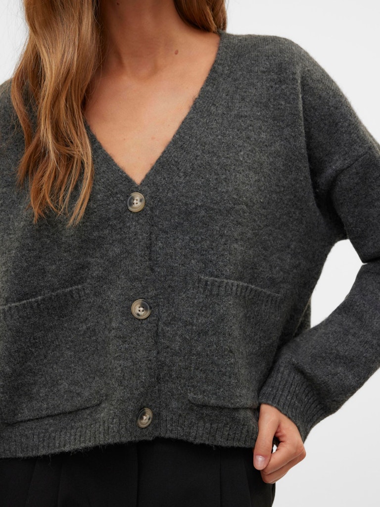 Brug den som et sødt ekstra lag eller en chik strikket jakke. Denne tunge strikkede cardigan er den perfekte tilføjelse til din garderobe. Den er en nem og behagelig stil, der holder dig behagelig og varm. Brug den som et ekstra lag til dit allerede smarte outfit, eller skru lidt ned for dit fine look ved at føje en smule komfort til det. - Produkttype : Cardigan - Hals : V-hals - Ærme : Lange ærmer - Ærmer : Sænkede skuldersømme - Manchetter : Manchetter i rib - Lukning : Knaplukning - Lommer : Forlommer - Pasform : Regular fit