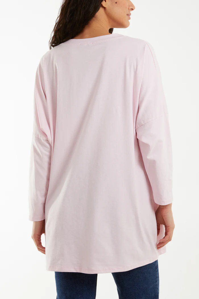 Smart langærmet bluse med fint blomstermotiv. Farve: Lyserød. Fremstillet i 95% bomuld, 5% elastan.