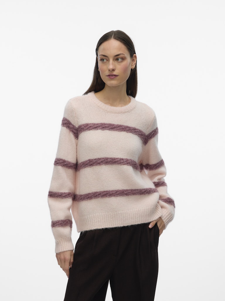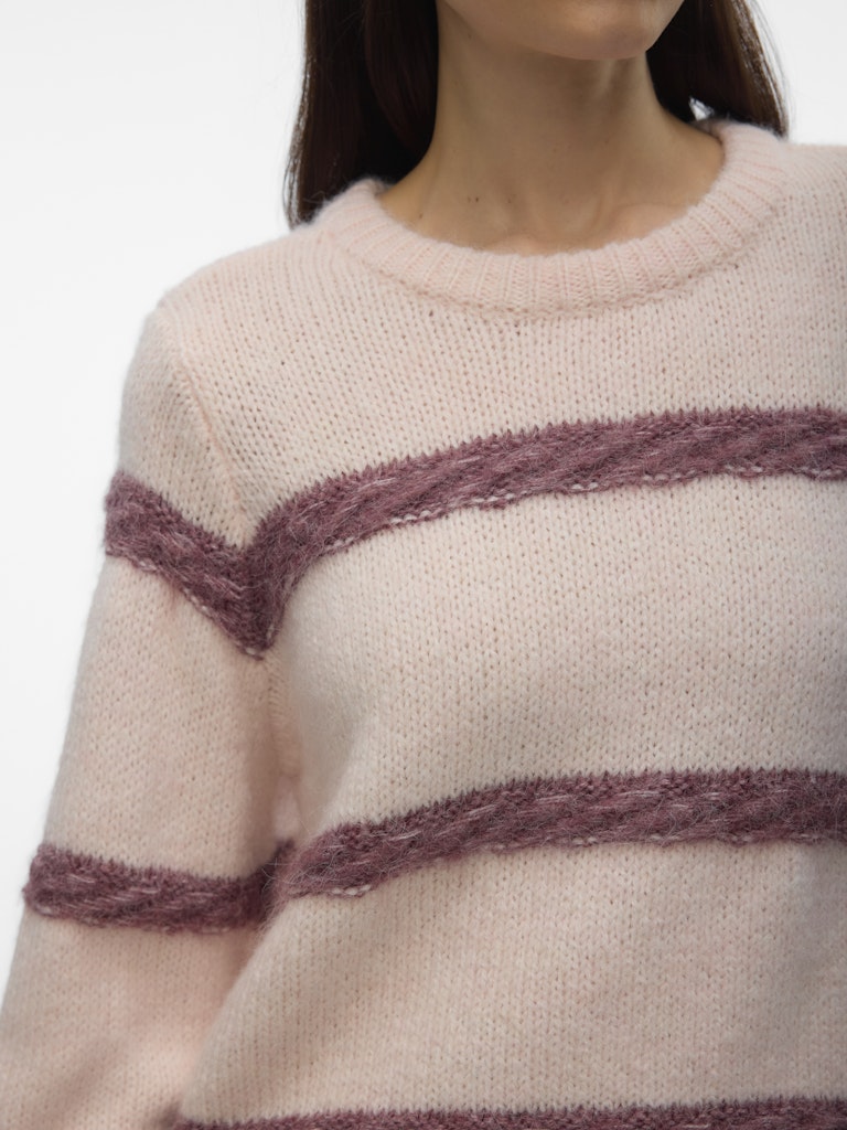 Striktrøjen er udstyret med en klassisk O-hals, der giver et rent og feminint look. De lange ballonærmer tilføjer et moderne twist, og ribmanchetterne sikrer, at ærmerne sidder flot hele dagen. Pasformen er regular fit, hvilket betyder, at den er behagelig at have på og nem at kombinere med alt fra jeans til nederdele. Denne dame striktrøje med ballonærmer giver derfor både stil og funktionalitet i ét.