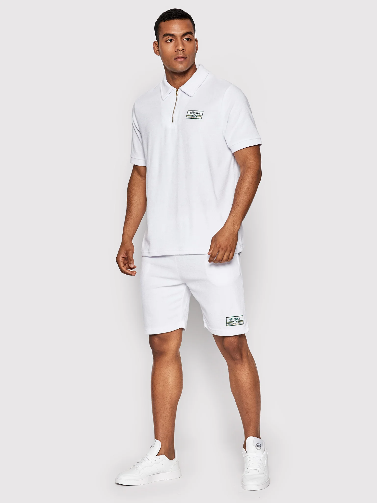 Lækre Ellesse shorts til herrer i super komfortabel og afslappet stil. Elastik og snøre i livet, samt to åbne sidelommer. Ellesse logo broderet på benet. Baglomme med velcrolukning og broderet Ellesse logo. Farve : White. Fremstillet i 80% bomuld, 20% polyester.