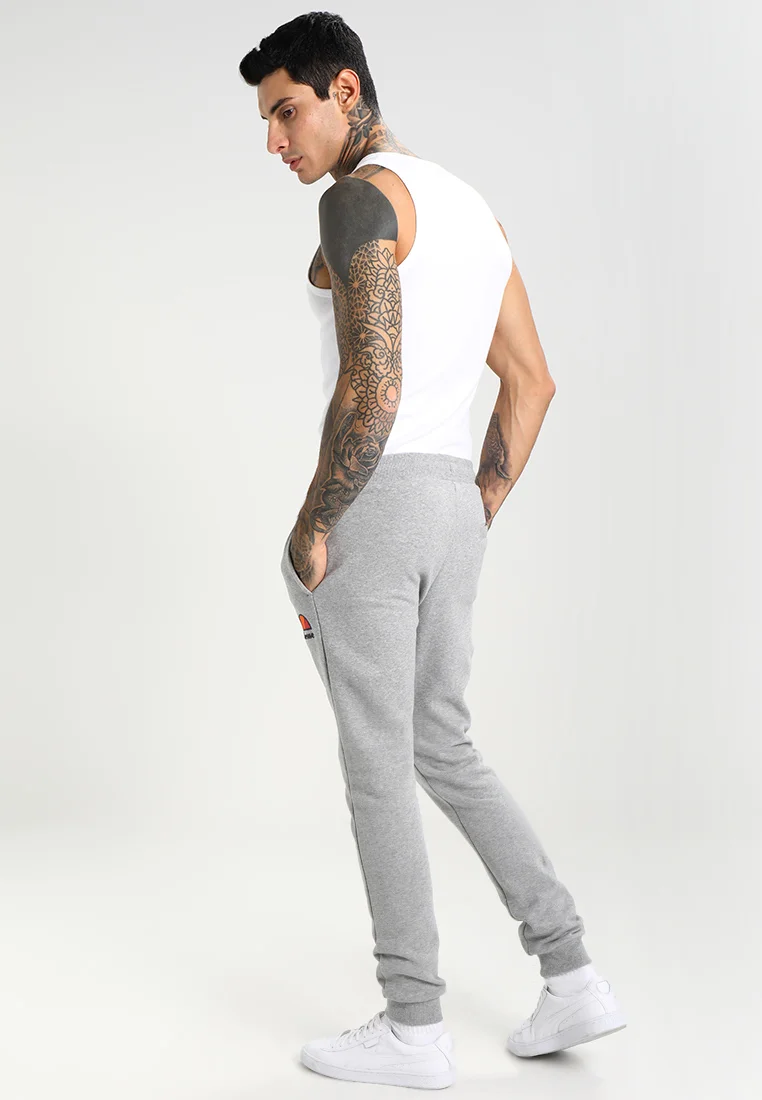 Smarte tætsiddende sweat bukser fra Ellesse. To sidelommer samt elastik i livet med udvendig snøre. Logo på siden. Farve : Grey Marl. Fremstillet i 80% bomuld, 20% polyester.