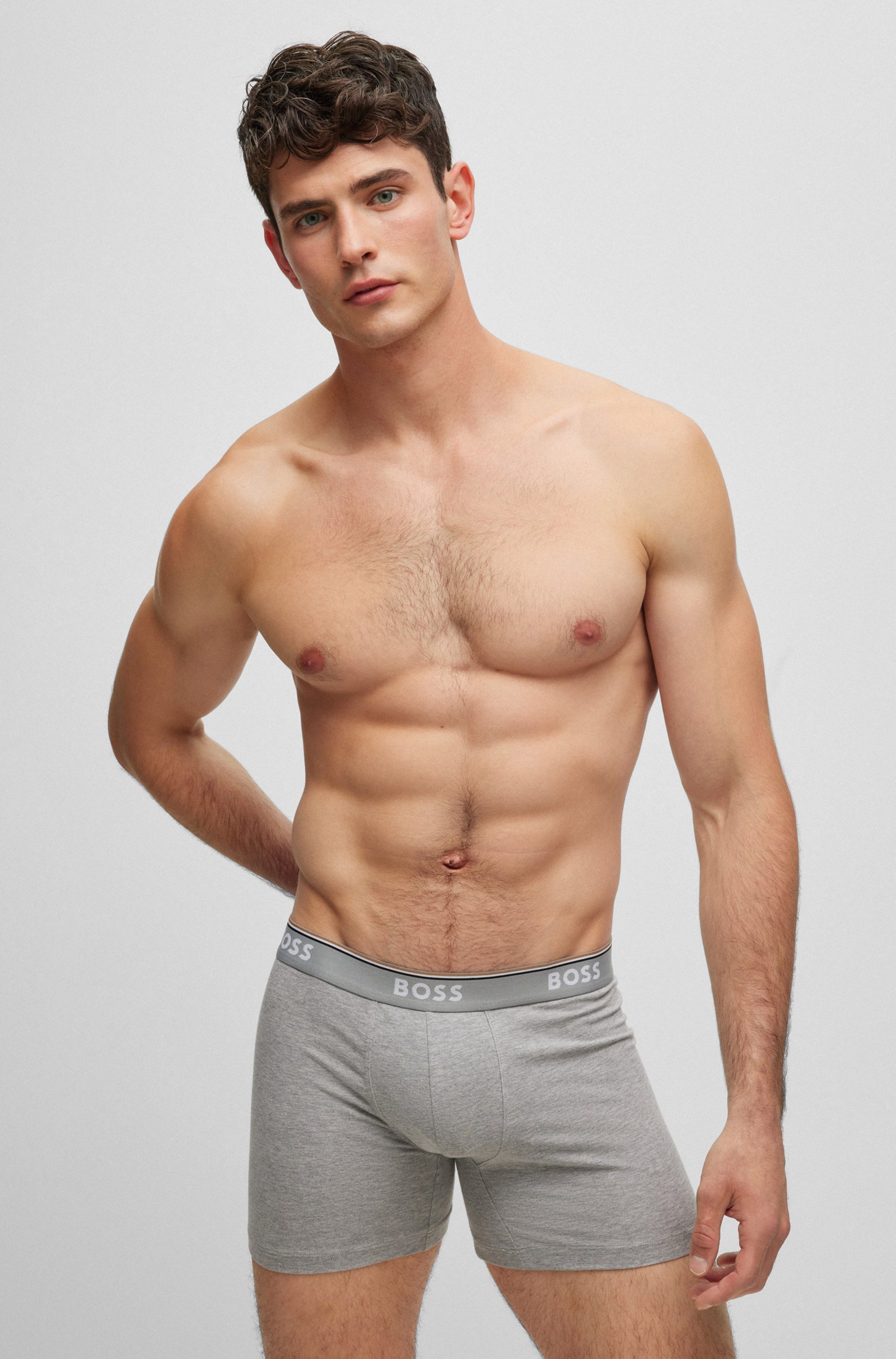 Klassiske boxershorts fra Hugo Boss i lækker kvalitet. Med logo på kanten og stretch for perfekt og komfortabel pasform. Farve : Black/White/Grey. Fremstillet i 95% bomuld, 5% elastan.