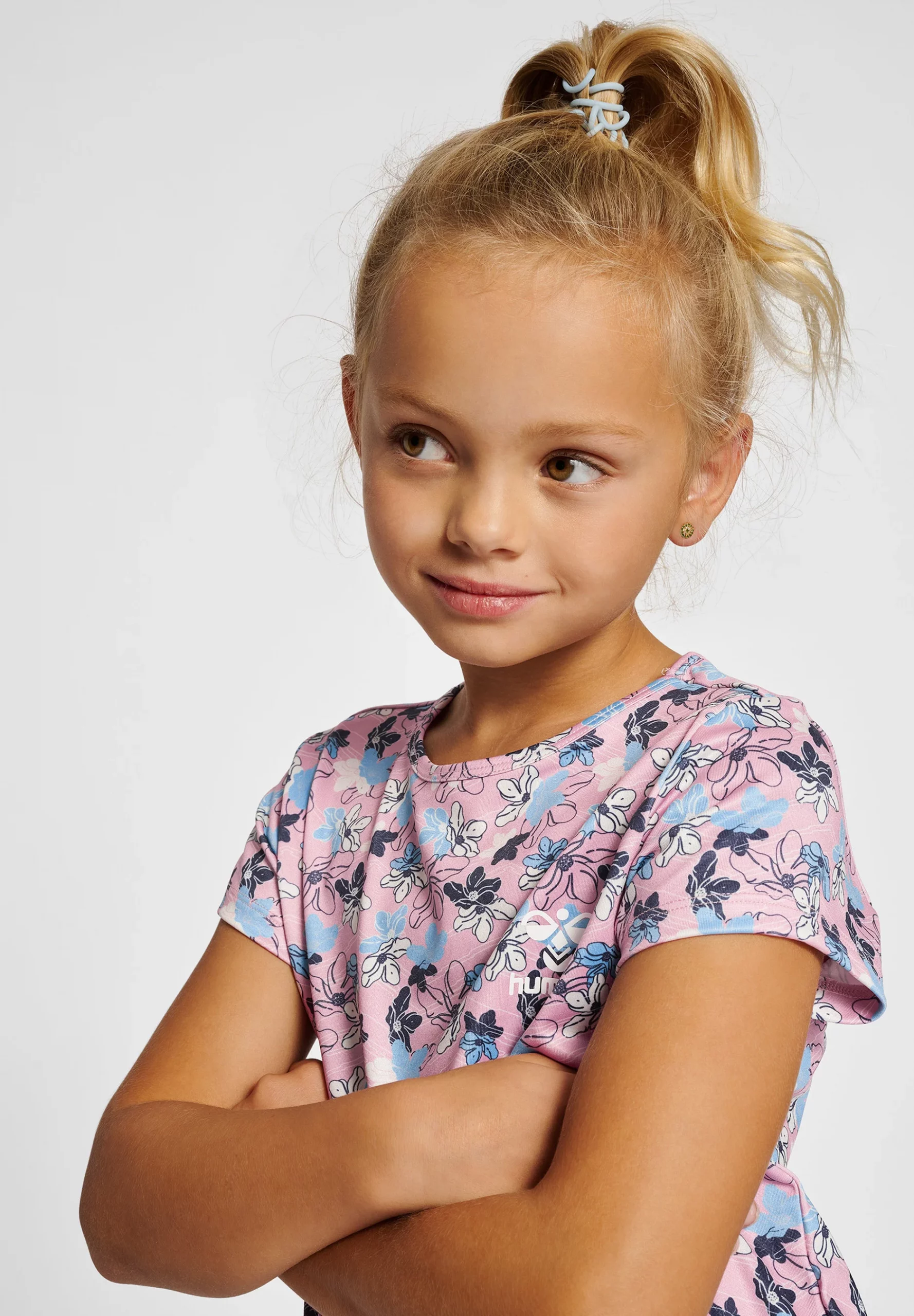 Sød kortærmet t-shirt fra Hummel med fine motiver. Farve : Zephyr. Fremstillet i 95% polyester, 5% elastan.