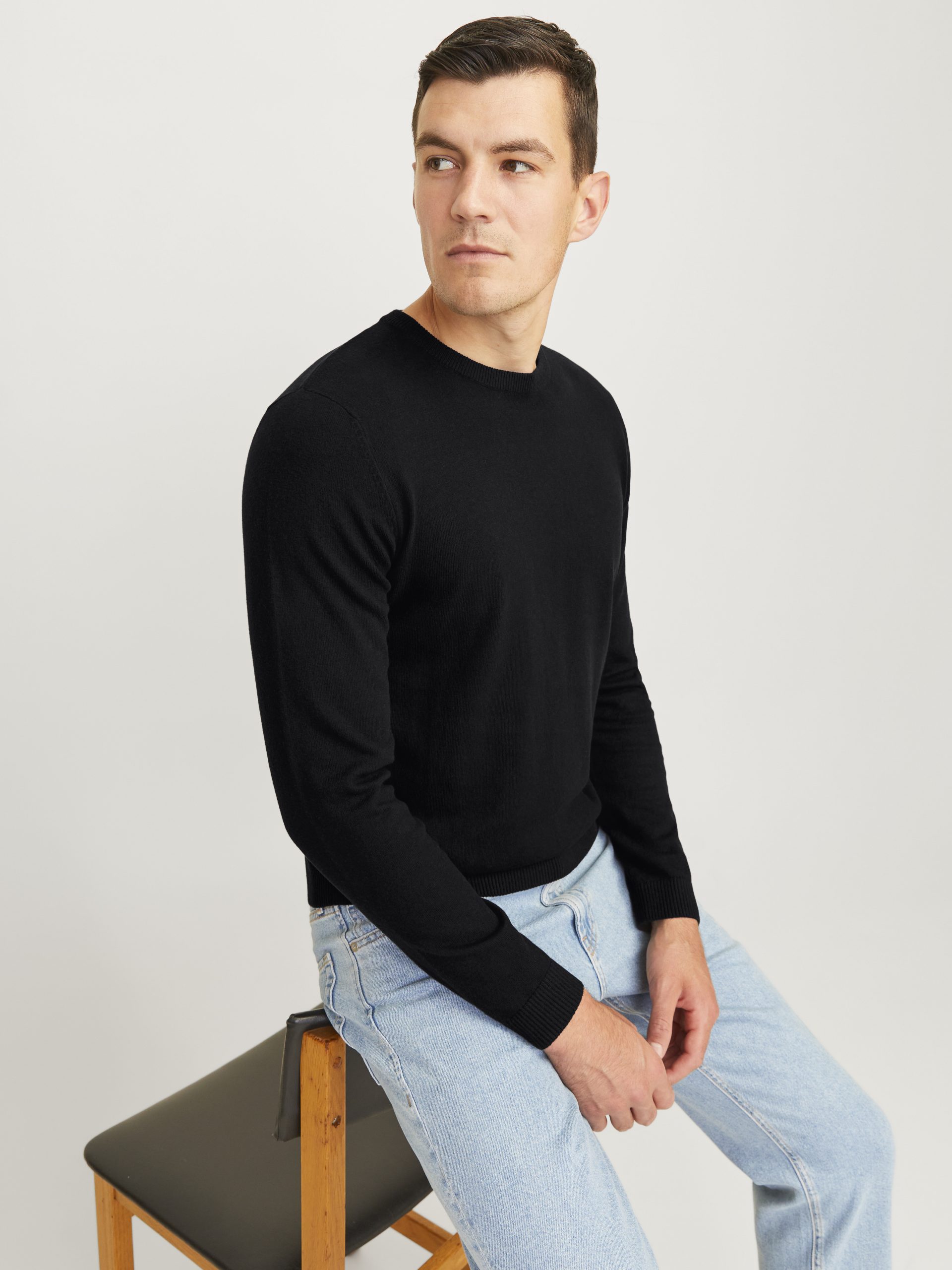Denne sorte enkle strik er det sikre valg og passer til stort set alt i din garderobe. Fladstrik er et strikket marteriale med komfort og fleksibilitet. Med rund hals og i regular fit. Farve : Black. Fremstillet i 70 % Bomuld, 30 % Polyester.