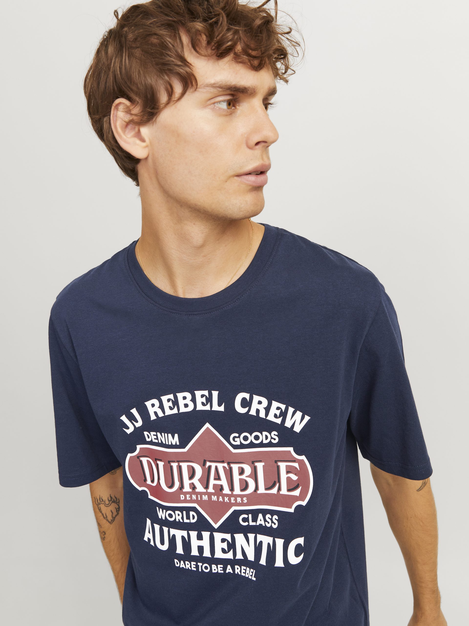Det bliver ikke mere enkelt end en T-shirt. Du kan bruge den sammen med alt fra din garderobe. Børstet jersey er strækbart og blødt, perfekt til hverdagsbrug. Farve: Navy. Fremstillet i 100 % Bomuld.