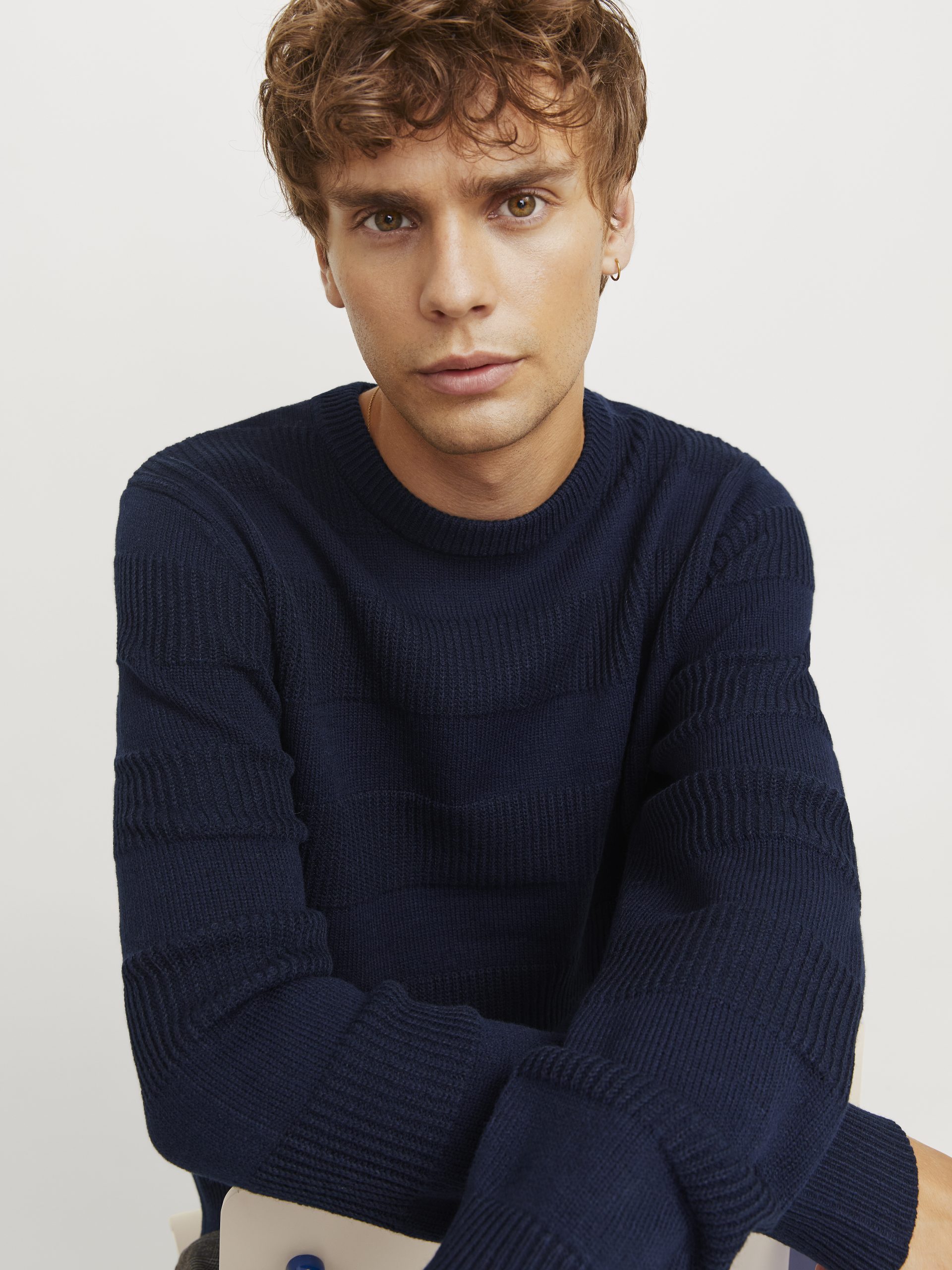 Dette er strikken, du kan have på i weekenden til jeans eller sammen med en skjorte og bukser på kontoret.. Fladstrik er et strikket marteriale med komfort og fleksibilitet. Farve: Sky Captain. Fremstillet i 72 % Polyacryl, 28 % Polyester.