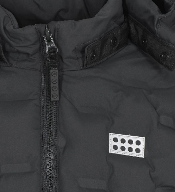 Lækker dynejakke fra Lego Wear med quiltet struktur. Aftagelig hætte og snefang i armåbningerne.