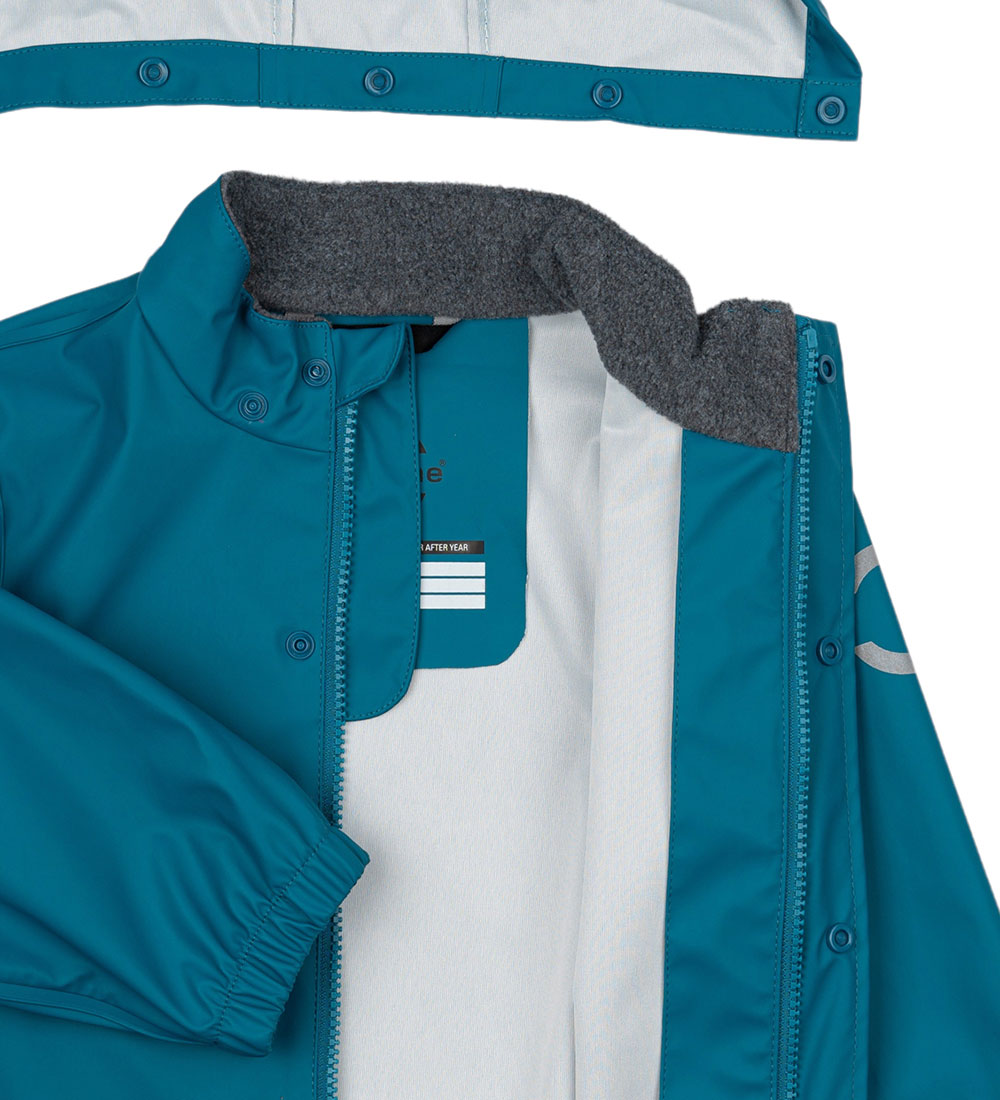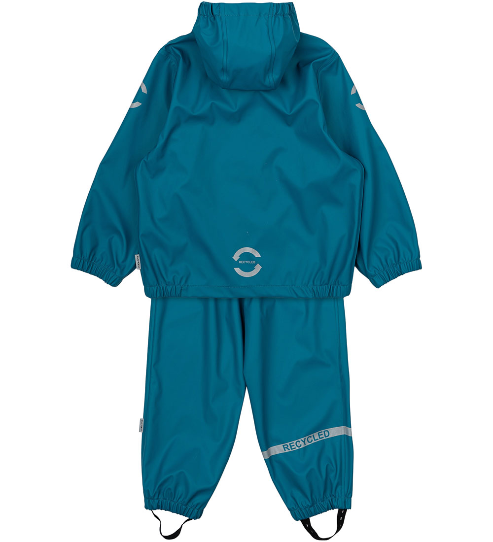 Smart Mikk-Line regntøj bestående af en regnjakke og et par regnbukser i ensfarvet blå.