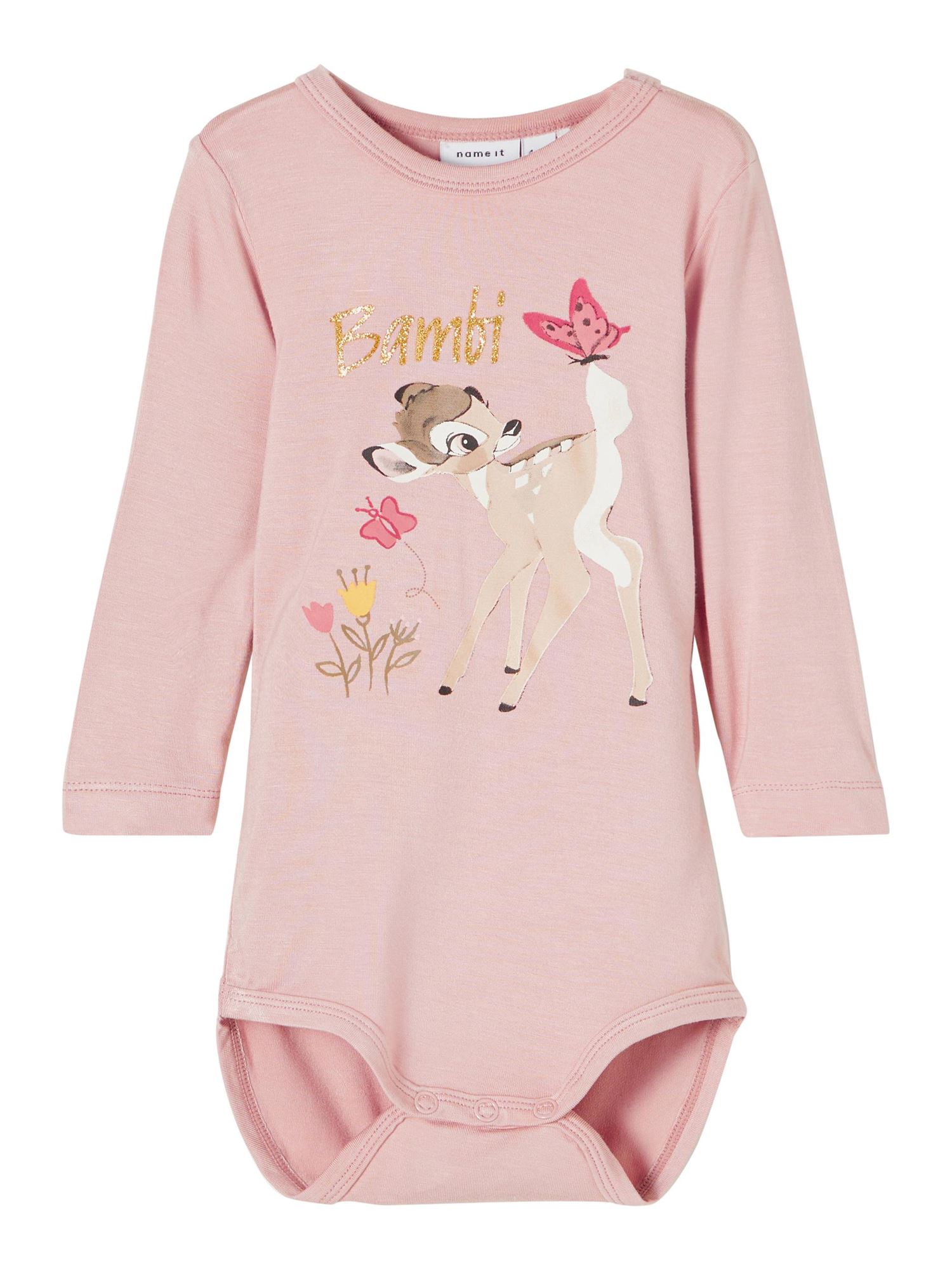 Fin langærmet body fra Name it, med Bambi print og rund hals. I farven Adobe Rose.