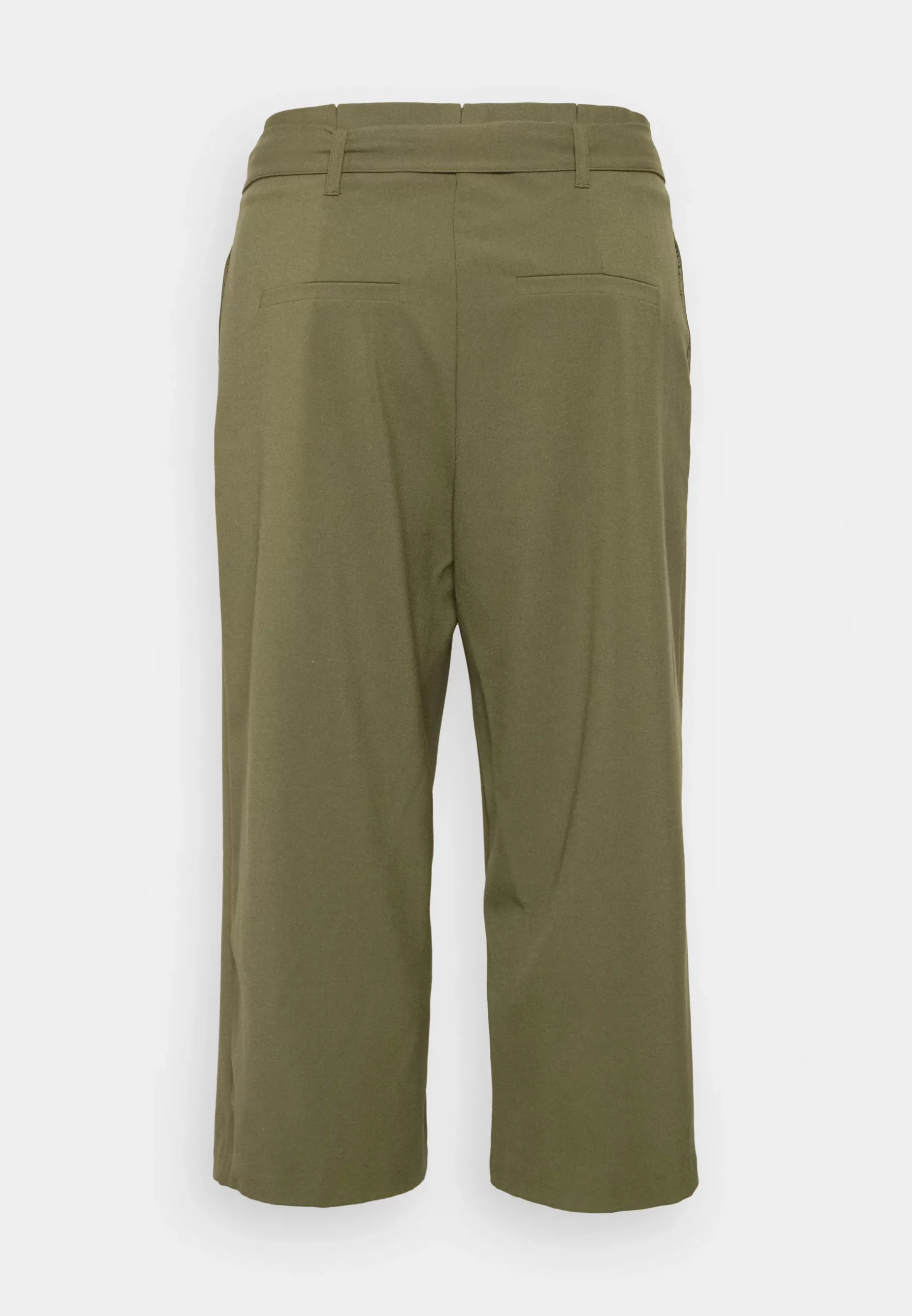 Smarte bukser fra Only Carmakoma, med knap luk, skjult lynlås og bælte. Farve : Kalamata. Fremstillet i 62% polyester, 33% viskose, 5% elastan.
