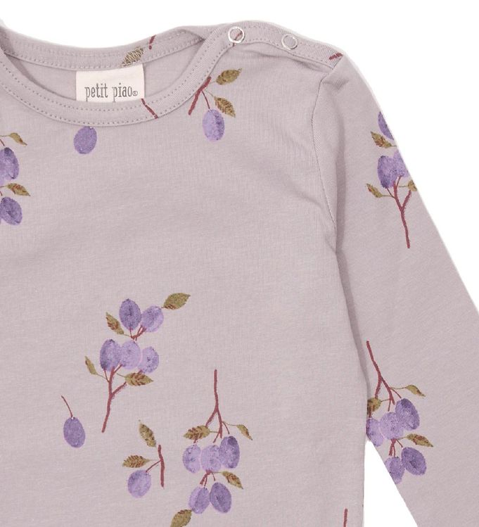 Flot langærmet unisex bluse, med det fineste print. Knapluk ved halsudskæringen gør det nemt at få den på. Farve : Plum. Fremstillet i 95% økologisk bomuld, 5% elastan.