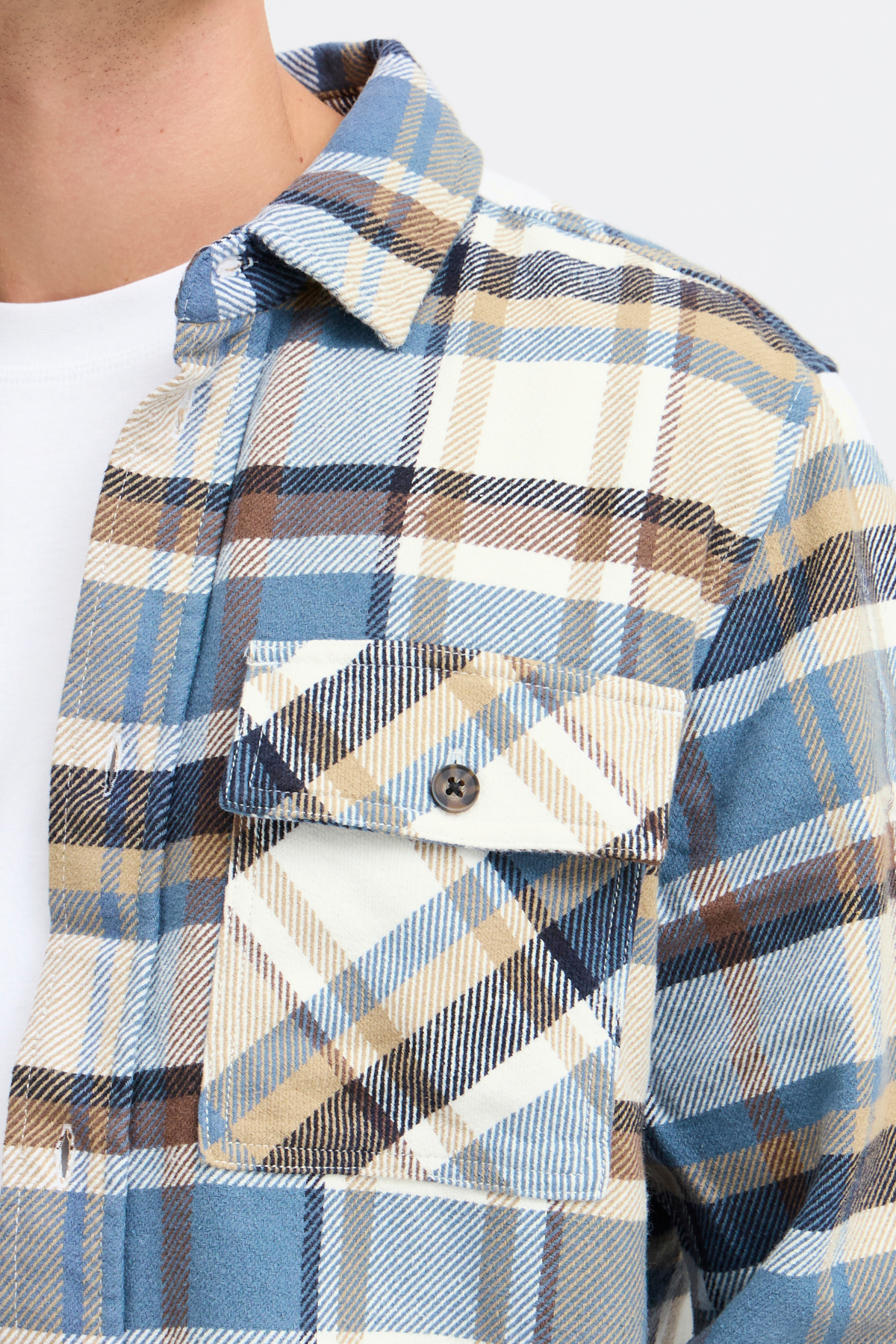 Super populær overshirt i tern og med lommer på brystet. Fremstillet i 100% bomuld. Farve: Faded Denim.