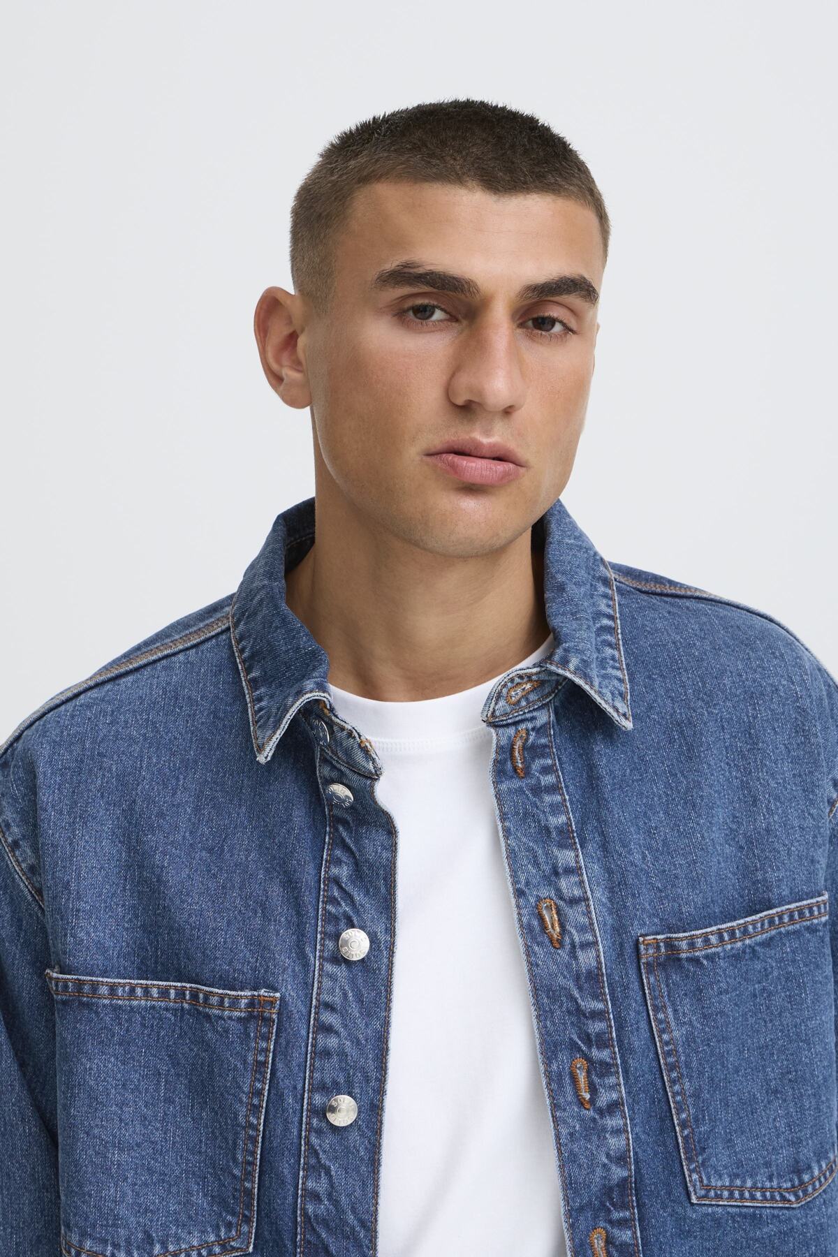Smart overshirt fra Solid, i dejlig kraftig denim kvalitet. Fremstillet i 100% bomuld.