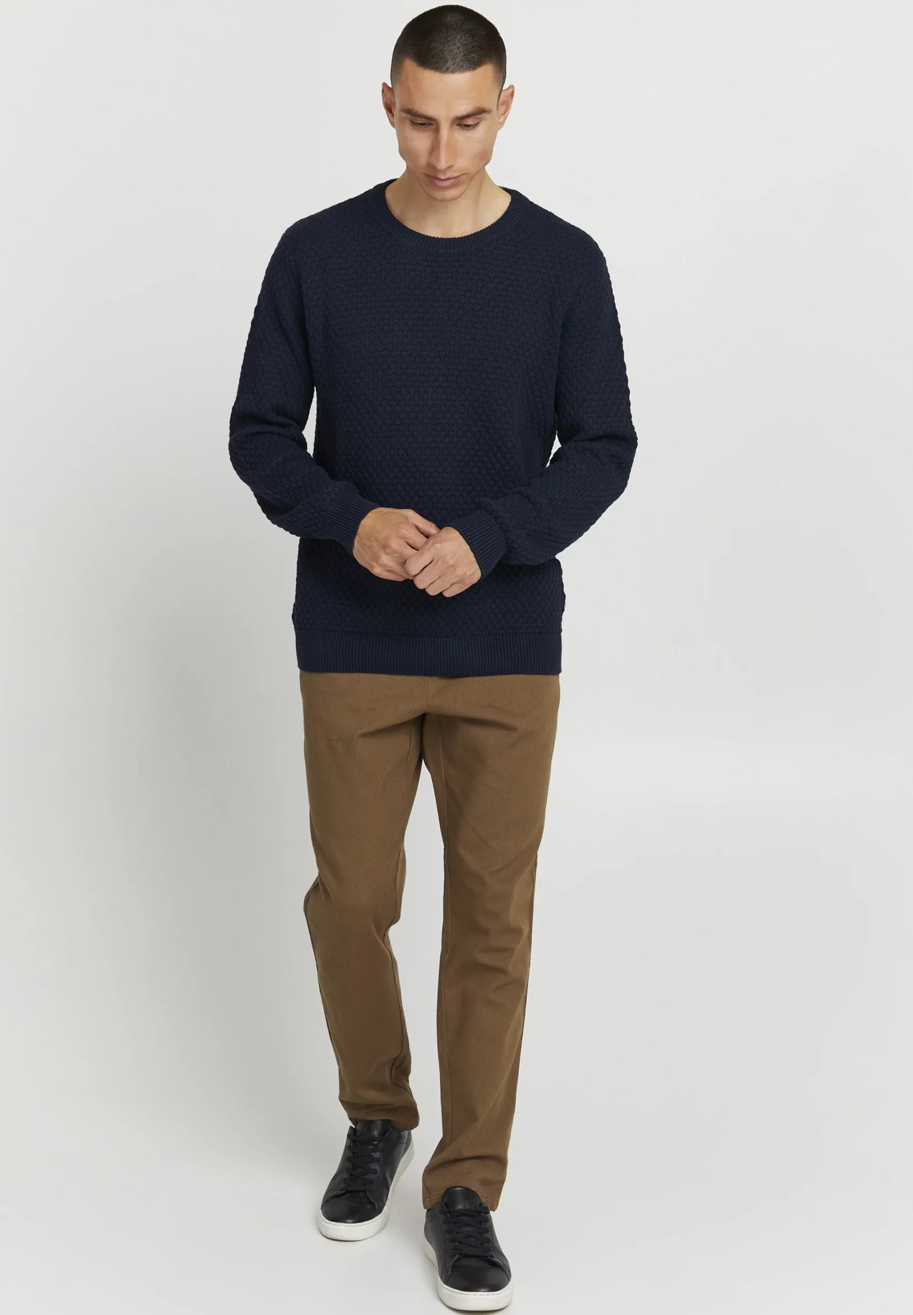 Super lækker strik fra Solid. Med rund hals og lavet i en dejlig let og blød kvalitet. Farve : Insignia Blue. Fremstillet i 100% bomuld.