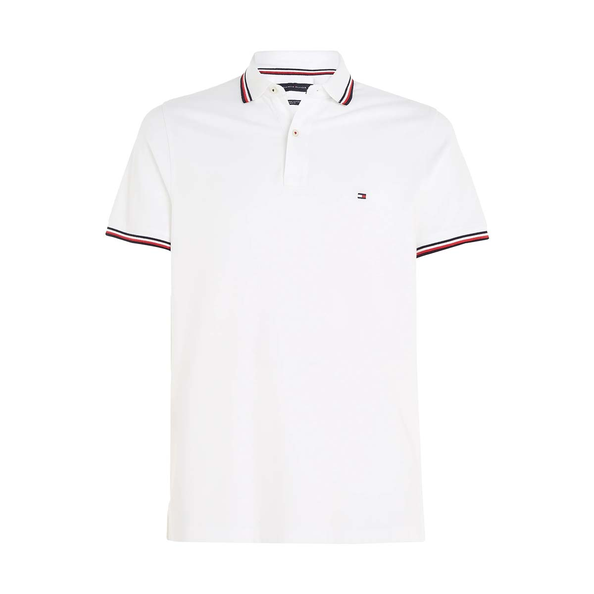 Klassisk herre polo fra Tommy Hilfiger i dejlig let kvalitet med perfekt pasform. Med tipped kant på krave og ved ærmerne. Logo på brystet. Farve: Hvid. Fremstillet i 100% økologisk bomuld.