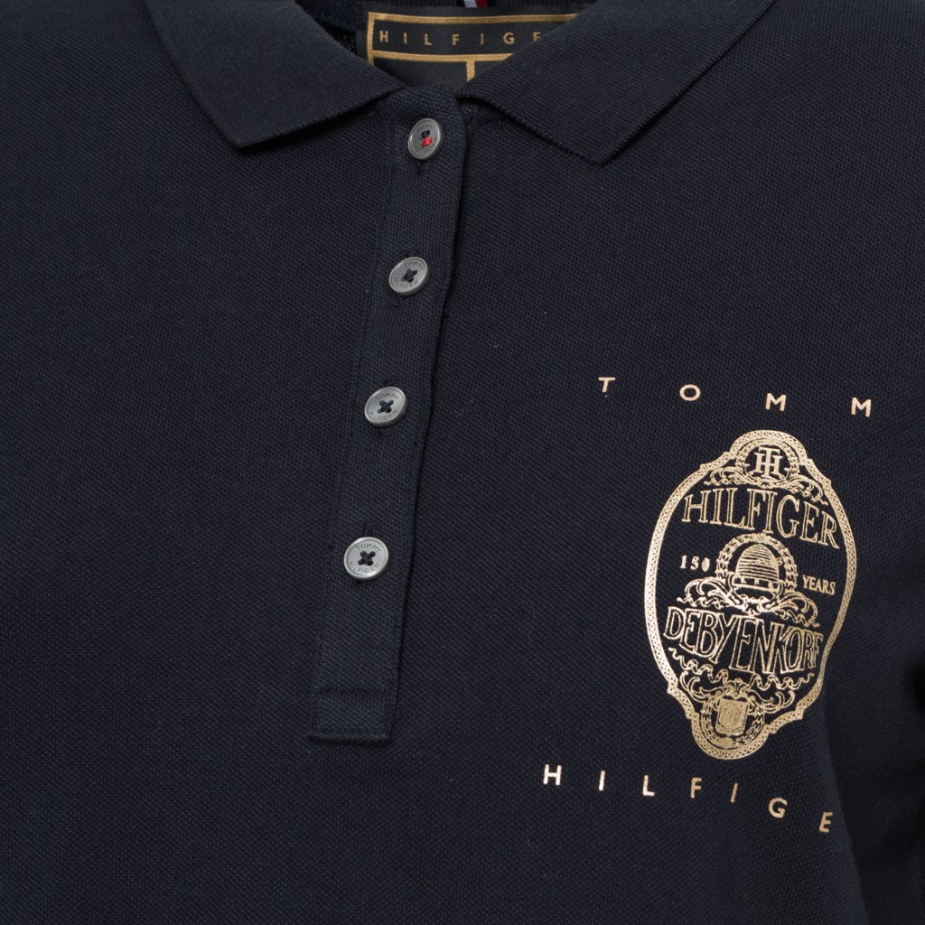 Stilfuld Hilfiger dame polo med logo foran.