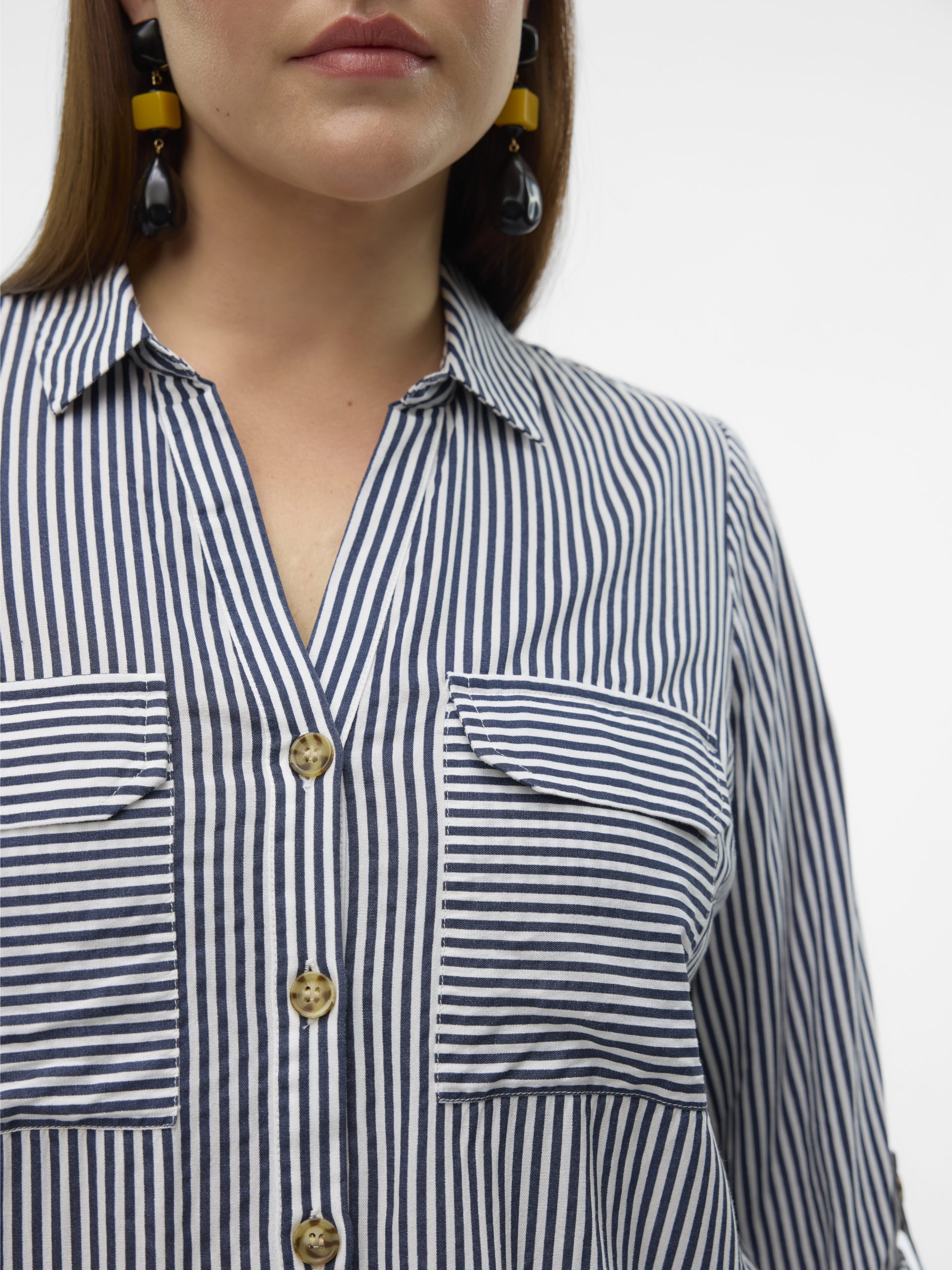 Denne skjorte er en chik og alsidig tilføjelse til din garderobe, da den kan bæres alene såvel som åben med en simpel top under. Brug den med klassiske jeans og en simpel T-shirt for at få et cool hverdagslook, eller gør den finere med et par bukser og højhælede. Curve er designet til at passe den kurvede kvinde. Fremstillet i  100% LENZING™ ECOVERO™ Viskose