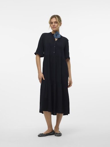Denne kjole er det perfekte valg til de dage, hvor det virker umuligt at sætte et outfit sammen. Kombinationen af komfort og stil gør denne kjole til en perfekt hverdags-go-to. Gør den finere eller mere afslapper afhængigt af din smag. Fremstillet i 100% Viskose – Livaeco by Birla Cellulose™