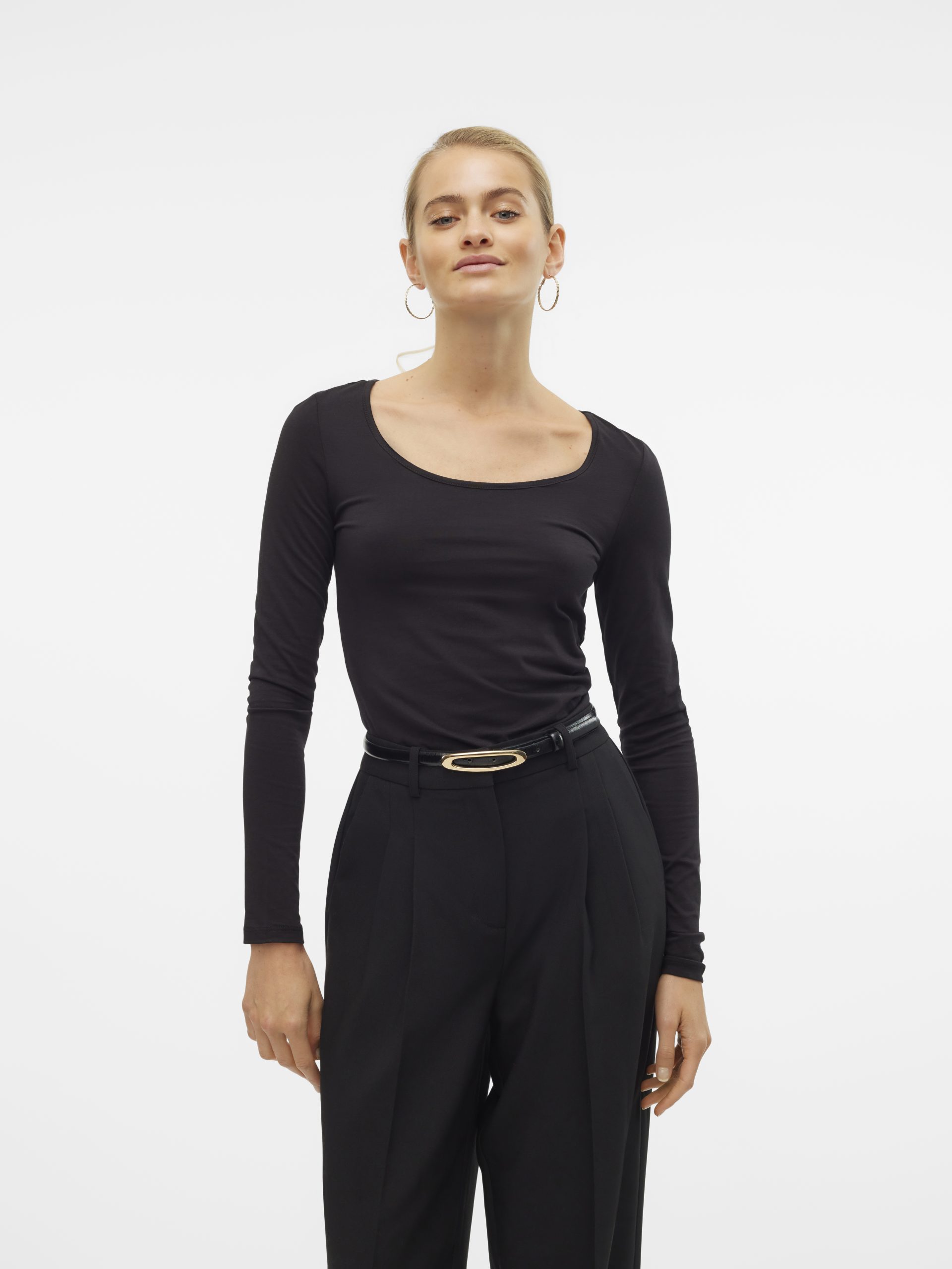 Basisvarer vil uundgåeligt findes i enhver garderobe. Vores basistoppe hjælper med at binde et outfit sammen, og denne top er ingen undtagelse. Brug den med en skjortejakke over, et par afslappede mom-jeans og chunky støvler, og du har et afslappet og cool hverdagslook. Fremstillet i 95% Bomuld, 5% Elastan.